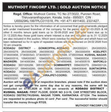 Muthoot Fincorp Ltd Gold Auctions Auction in Thiruvananthapuram