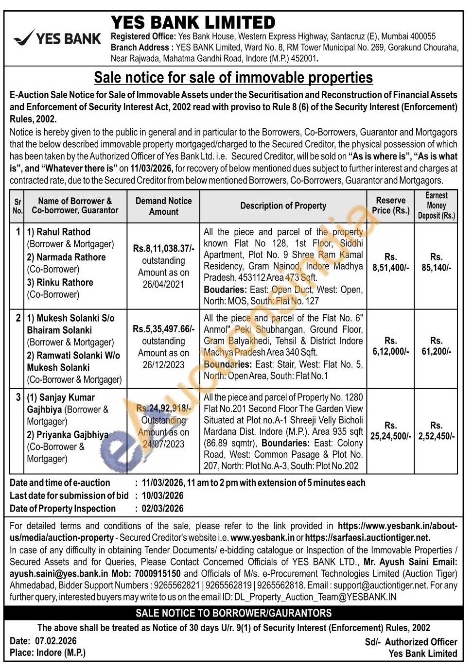 All the piece and parcel of the Flat No. 6" Anmol" Peki Shubhangan, Ground Floor, Gram Balyakhedi, Tehsil & District Indore Madhya Pradesh Area 340 Sqft.Boundaries: East: Stair, West: Flat No. 5, North: Open Area, South: Flat No.1