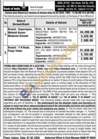 Make & Model:- SUPER METRO INDUSTRIES SUPER METRO 100 E RICKSHAW)Registration No:-MP03FD7440Chassis No:-MO9SERC23KM389129Engine No:-SM123AM00129