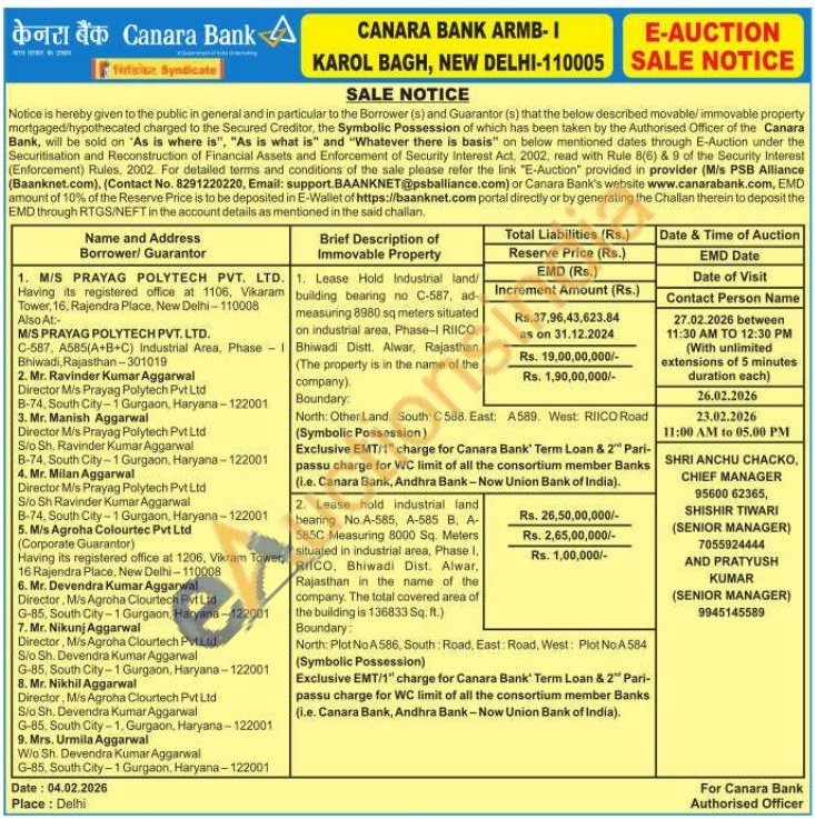 Exclusive EMT/1" charge for Canara Bank' Term Loan & 2 Pari-passu charge for WC limit of all the consortium member Banks (i.e. Canara Bank, Andhra Bank-Now Union Bank of India