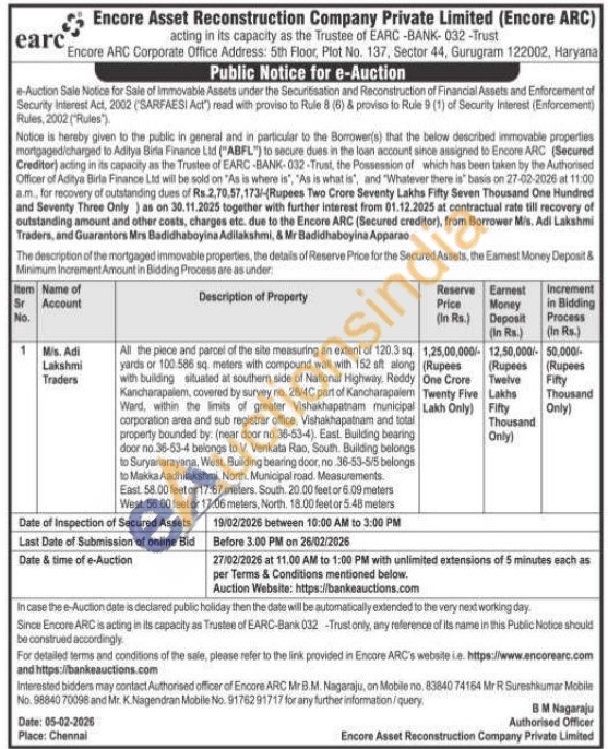 Authorised officer Mr.B.M. Nagaraju Mobile no : 8384074164 / MrR Sureshkumar Mobile No : 9884070098 / Mr. K. Nagendran Mobile No : 9176291717