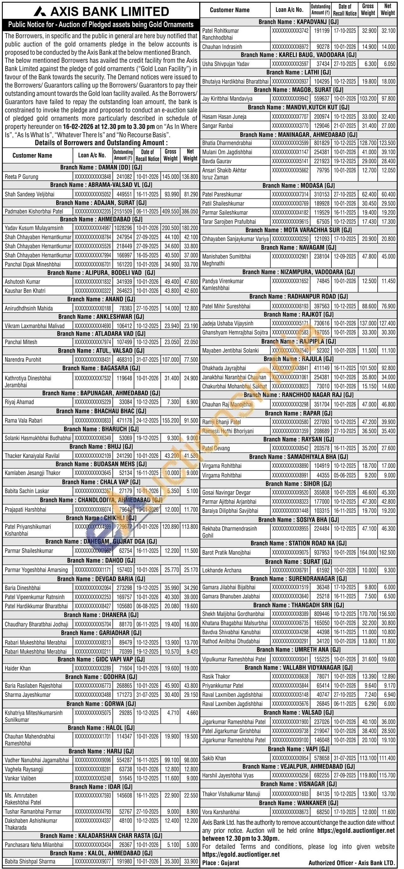 Axis Bank Gold Auctions Auction in Daman and Diu