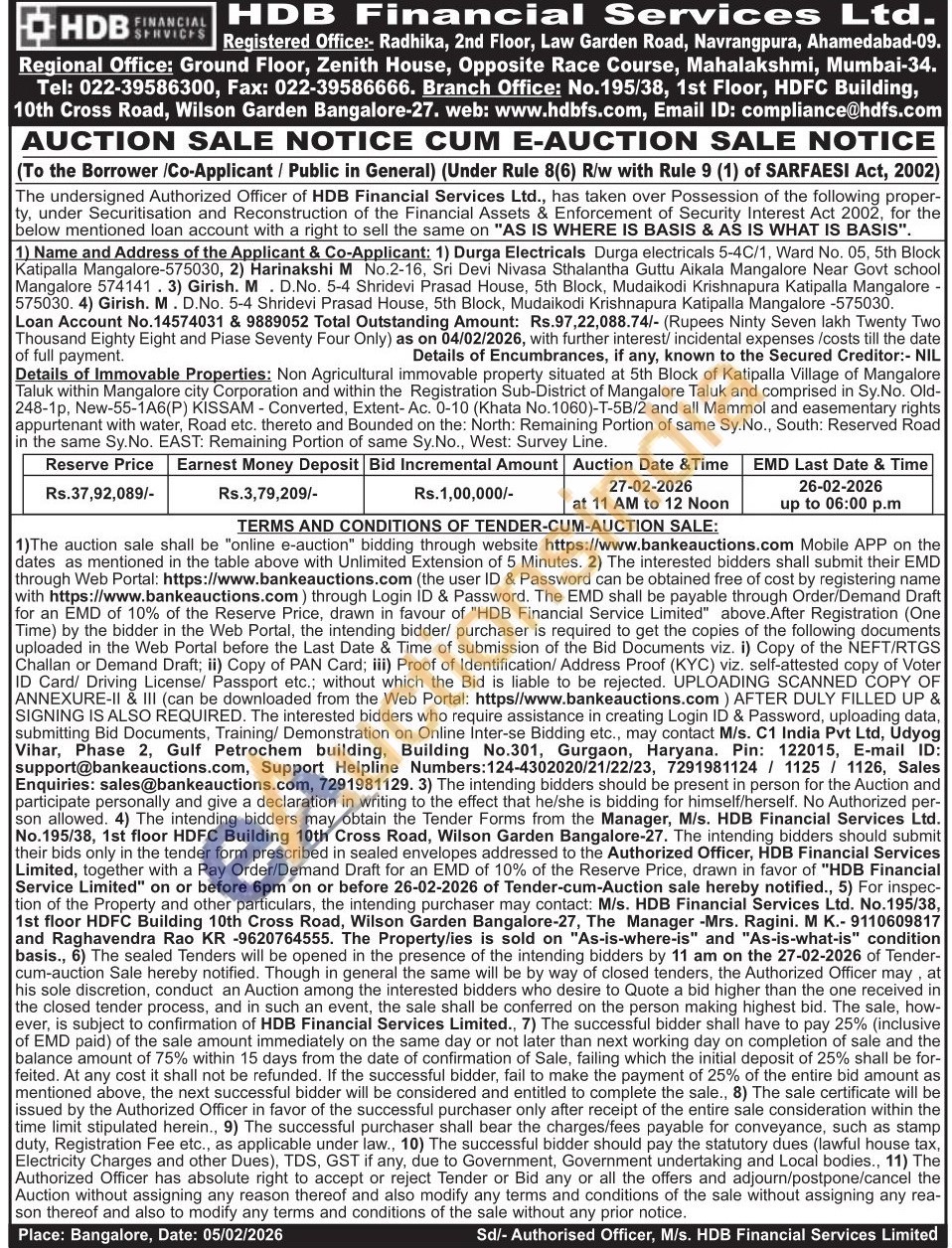 Details of Immovable Properties: Non Agricultural immovable property situated at 5th Block of Katipalla Village of Mangalore Taluk within Mangalore city Corporation and within the Registration Sub-District of Mangalore Taluk and comprised in Sy.No. Old-248-1p, New-55-1A6(P) KISSAM - Converted, Extent-Ac. 0-10 (Khata No. 1060)-T-5B/2 and all Mammol and easementary rights appurtenant with water, Road etc. thereto and Bounded on the: North: Remaining Portion of same Sy.No., South: Reserved Road in the same Sy.No. EAST: Remaining Portion of same Sy.No., West: Survey Line