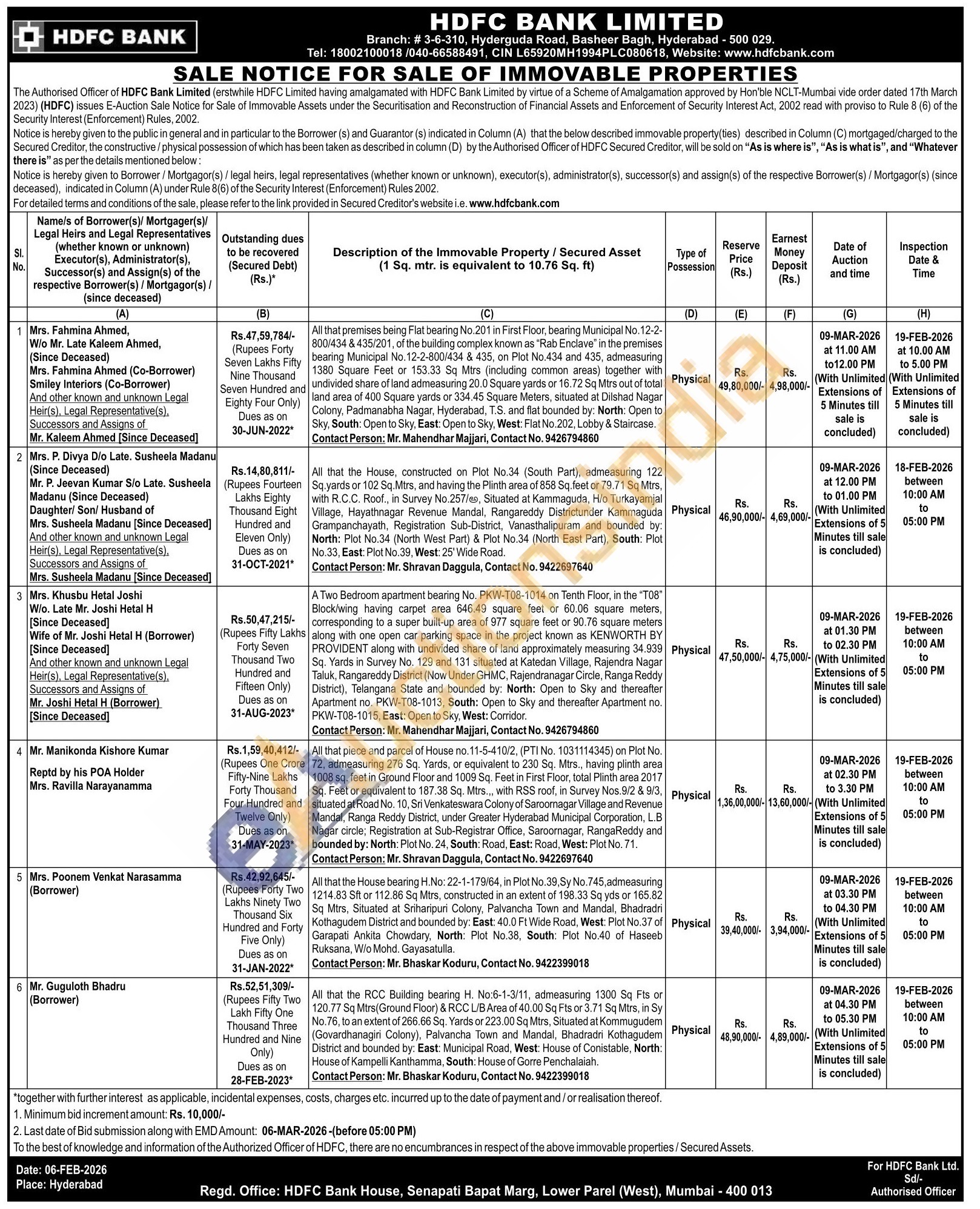 All that the House bearing H.No: 22-1-179/64, in Plot No.39, Sy No.745, admeasuring 1214.83 Sft or 112.86 Sq Mtrs, constructed in an extent of 198.33 Sq yds or 165.82 Sq Mtrs, Situated at Sriharipuri Colony, Palvancha Town and Mandal, Bhadradri Kothagudem District and bounded by: East: 40.0 Ft Wide Road, West: Plot No.37 of Garapati Ankita Chowdary, North: Plot No.38, South: Plot No.40 of Haseeb Ruksana, W/o Mohd. Gayasatulla