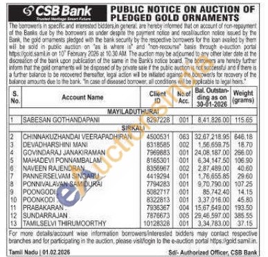 CSB Bank Gold Auctions Auction in Mayiladuthurai