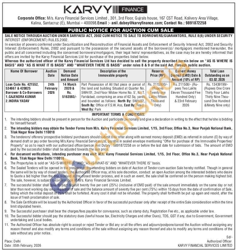 Part Possession of All that piece or parcel of the land and building Situated at Quarter No. 5WH/01, 2nd Floor Widow Home No. 5', N.I.T. Faridabad, comprising an area of 62 Sq. yards and bounded as follows: North By: 5WH/02, South By: Office of F.S.W. Ass, East By: Road West By: Park