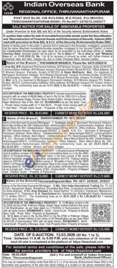 DESCRIPTION OF THE IMMOVABLE PROPERTY 1 17.80 Ares of land in Re 2556-No.3768) Palimon Village, Kollam Tatuk, Kollam District in the came Mr. Sharafudeen as per Sale deed no 1176/2003 of Kannanalloor 5.R.O thaf nights theren BOUNDARIES North Carol South Property of Shenta Beev East Road, West Property of Abdulkalam 210.12 Ares of land in Re Sy No.255/21-2 (Sy No.3768) in Pallinen Vilage Konak Kolam District in the name of Sharafudeen on pur Sale De No 95794 of Kannanalloor SRO with all rights therein. BOUNDARIES North