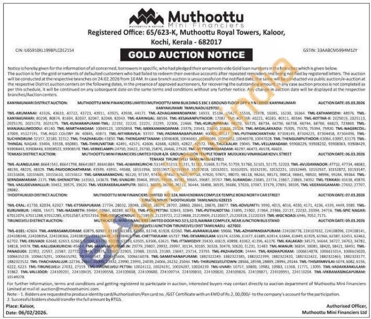 Muthoottu Mini Financiers Limited Gold Auctions Auction in Kanyakumari