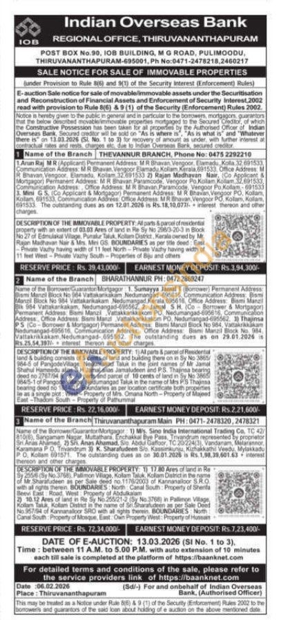 DESCRIPTION OF THE IMMOVABLE PROPERTY All parts & para ofe property with an extent of 03.03 Ares of land in Re Sy No 2083-20-3 in Block No 27 of Edmulakal Village, Punalur Taluk, Kollen District, Kerala owried by Mr. Rajan Madhavan Nair & Mrs. Mei GS BOUNDARIES as per the deed: East Private Vauty having width of 11 11 feet North Pruate Vachy having width of 11 feet West-Pate Vauty South-Properties of Bu and others