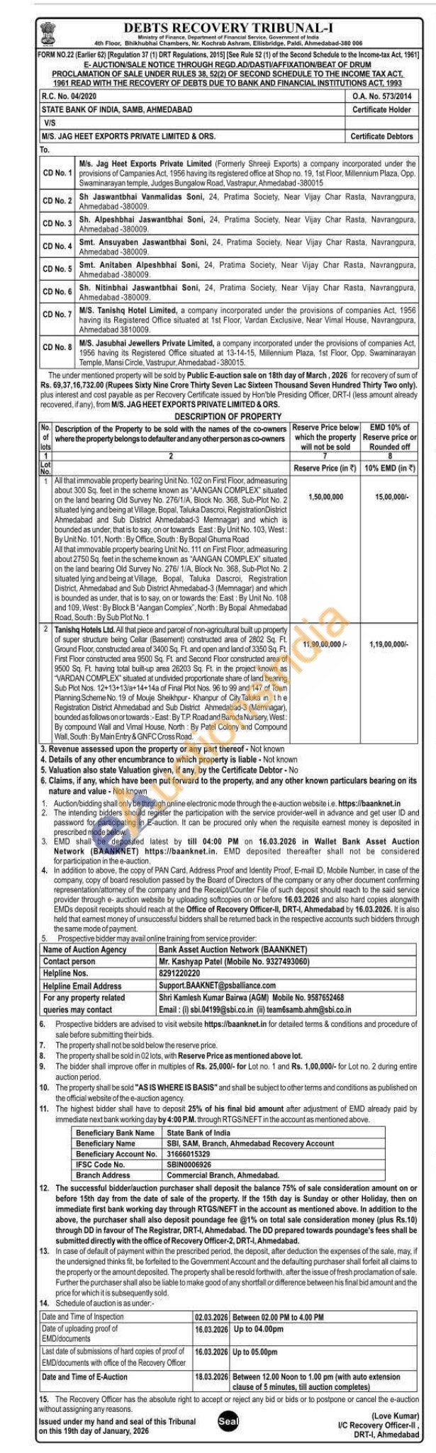 All that immovable property bearing Unit No. 102 on First Floor, admeasuring about 300 Sq. feet in the scheme known as "AANGAN COMPLEX" situated on the land bearing Old Survey No. 276/1/A, Block No. 368, Sub-Plot No. 2 situated lying and being at Village, Bopal, Taluka Dascroi, Registration District Ahmedabad and Sub District Ahmedabad-3 Memnagar) and which is bounded as under, that is to say, on or towards East: By Unit No. 103, West: By Unit No. 101, North: By Office, South: By Bopal Ghuma Road All that immovable property bearing Unit No. 111 on First Floor, admeasuring about 2750 Sq. feet in the scheme known as "AANGAN COMPLEX" situated on the land bearing Old Survey No. 276/ 1/A, Block No. 368, Sub-Plot No. 2 situated lying and being at Village, Bopal, Taluka Dascroi, Registration District, Ahmedabad and Sub District Ahmedabad-3 (Memnagar) and which is bounded as under, that is to say, on or towards the: East: By Unit No. 108 and 109, West: By Block B "Aangan Complex", North: By Bopal Ahmedabad Road, South: By Sub Plot No. 1