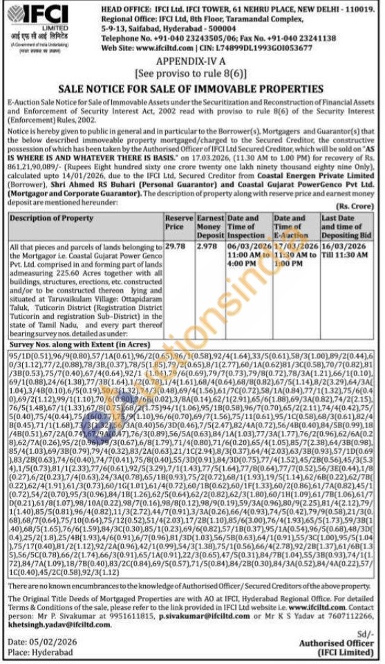 All that pieces and parcels of lands belonging to the Mortgagor Le. Coastal Gujarat Power Genco Pvt. Ltd. comprised in and forming part of lands admeasuring 225.60 Acres together with all buildings, structures, erections, etc. constructed and/or to be constructed thereon lying and situated at Taruvaikulam Village: Ottapidaram Taluk, Tuticorin District (Registration District Tuticorin and registration Sub-District) in the state of Tamil Nadu, and every part thereof bearing survey nos, detailed as under