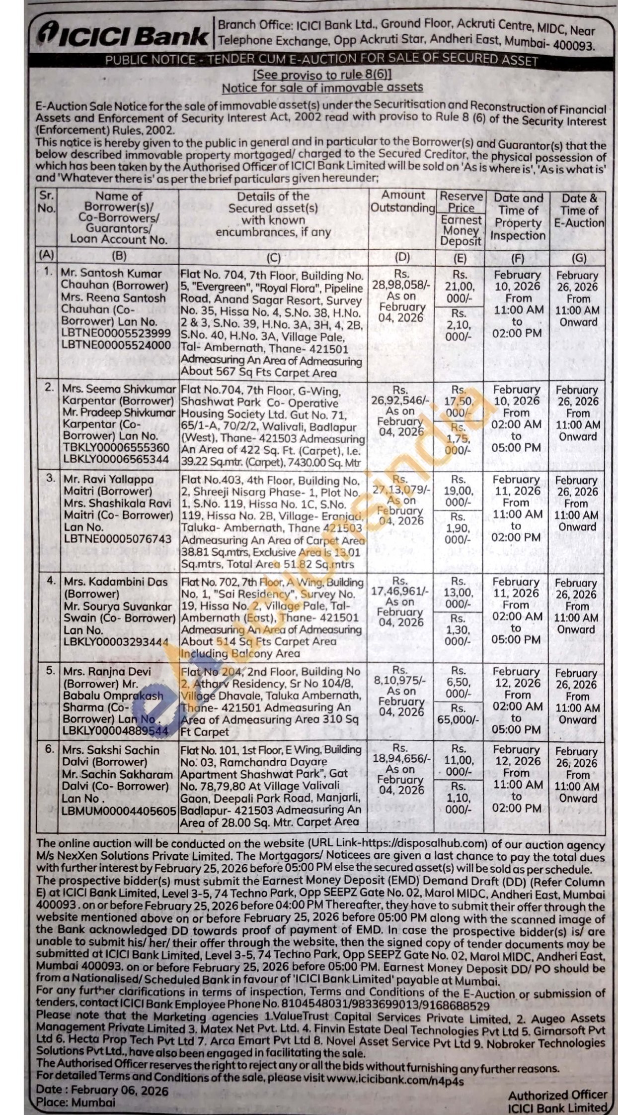 Flat No. 704, 7th Floor, Building No. 5. "Evergreen", "Royal Flora". Pipeline Road, Anand Sagar Resort, Survey No. 35. Hissa No. 4. S.No. 38, H.No. 2 & 3. S.No. 39, H.No. 3A, 34, 4, 28. S.No. 40, H.No. 3A, Village Pale. Tal- Ambernath, Thane-421501 Admeasuring An Area of Admeasuring About 567 Sq Fts Carpet Area