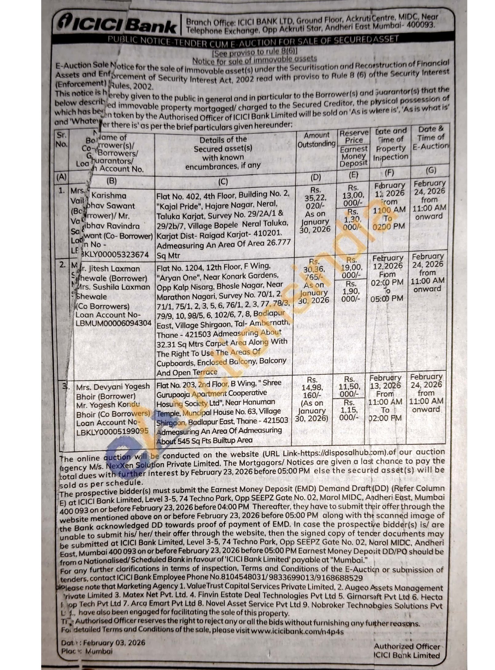 Flat No. 203, 2nd Floor, B Wing," Shree Gurupooja Apartment Cooperative Hosuing Society Ltd", Near Hanuman Temple, Muncipal House No. 63, Village Shirgaon, Badlapur East. Thane-421503 Admeasuring An Area Of Admeasuring About 545 Sq Fts Builtup Area