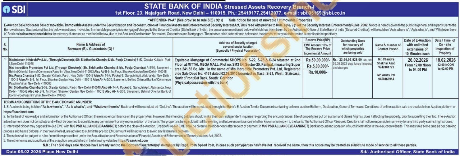 Equitable Mortgage of Commercial SHOPS No. S-22, S-23 & S-24 situated at 2nd Floor, at MITTAL MEGA MALL, Plot no. SM3 &4, Sector-25, Panipat, measuring Super area 241.55 Sq. Mtr. in the name of Mis Incredible Promoters Pvt. Ltd, Registered vide Sale Deed No. 4161 dated 02.08.2010 bounded as East: S-21, West: Staircase, North: Front Set Back, South: Corridor