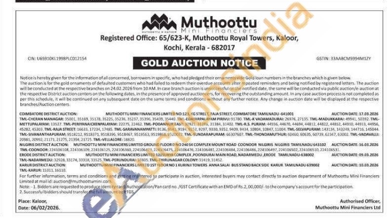 Muthoottu Mini Financiers Limited Gold Auctions Auction in Coimbatore