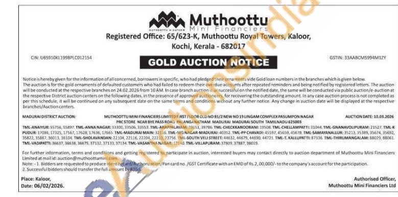 Muthoottu Mini Financiers Limited Gold Auctions Auction in Madurai