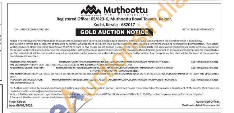 Muthoottu Mini Financiers Limited Gold Auctions Auction in Pudukkottai District