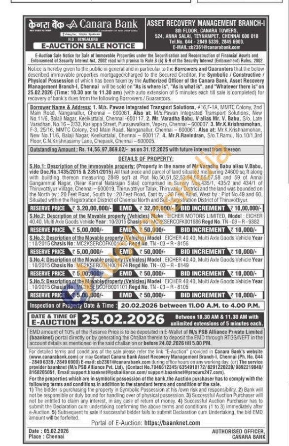 S.No.2: Description of the Movable property (Vehicles) Make: EICHER MOTORS LIMITED, Model: EICHER 40.40, Multi Axle Goods Vehicle Year: 10/2015 Chasis no: MC2KSERCOFK001686 Regd No. TN-03-R-9382