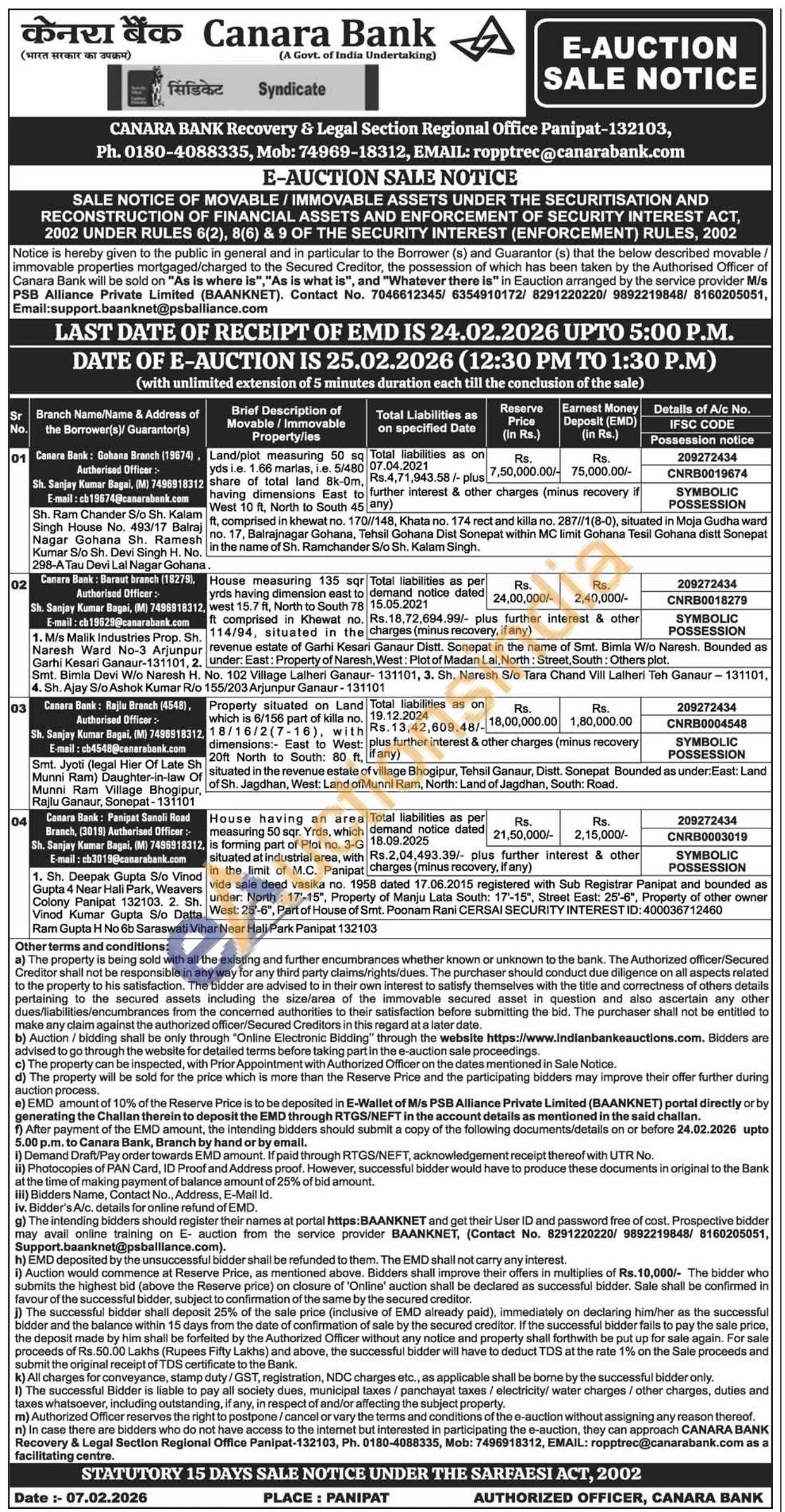 House having an area measuring 50 sqr. Yrds, which is forming part of Plot no. 3-G situated at industrial area, with in the limit of M.C. Panipat vide sale deed vasika no. 1958 dated 17.06.2015 registered with Sub Registrar Panipat and bounded as . under: North: 17"-15", Property of Manju Lata South: 17'-15", Street East: 25'-6", Property of other owner West: 25'-6", Part of House of Smt. Poonam Rani CERSAI SECURITY INTEREST ID: 400036712460
