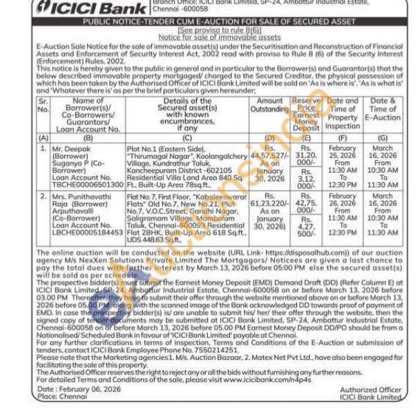 Plot No.1 (Eastern Side), Village, Kundrathur Taluk, Kancheepuram District-602105 "Thirumagal Nagar", Koolangalchery Residential Villa Land Area 840 Sq. Ft, Built-Up Area 78sq.ft.