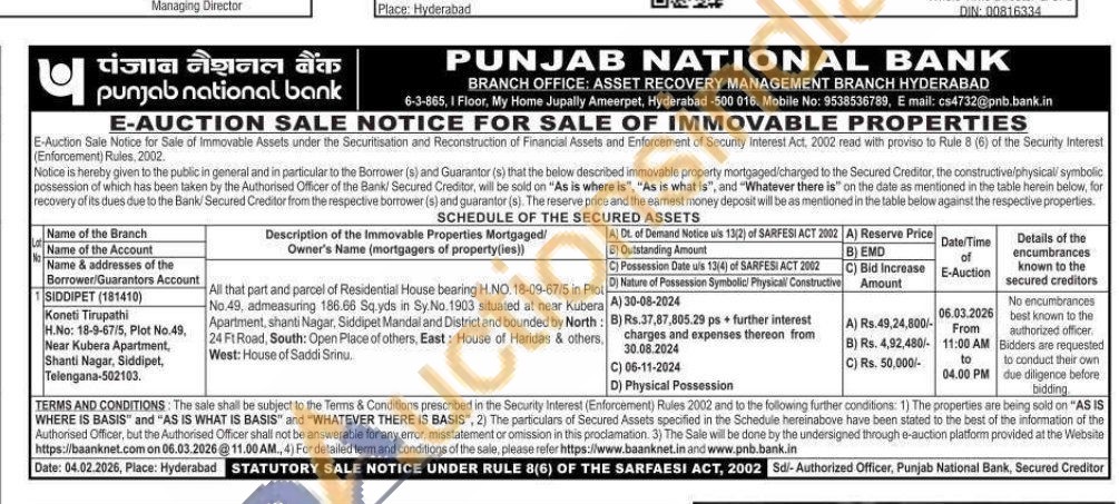 All that part and parcel of Residential House bearing H.NO. 18-09-67/5 in Plot No.49, admeasuring 186.66 Sq.yds in Sy.No. 1903 situated at near Kubera Apartment, shanti Nagar, Siddipet Mandal and District and bounded by North: B 24 Ft Road, South: Open Place of others, East: House of Haridas & others, West: House of Saddi Srinu