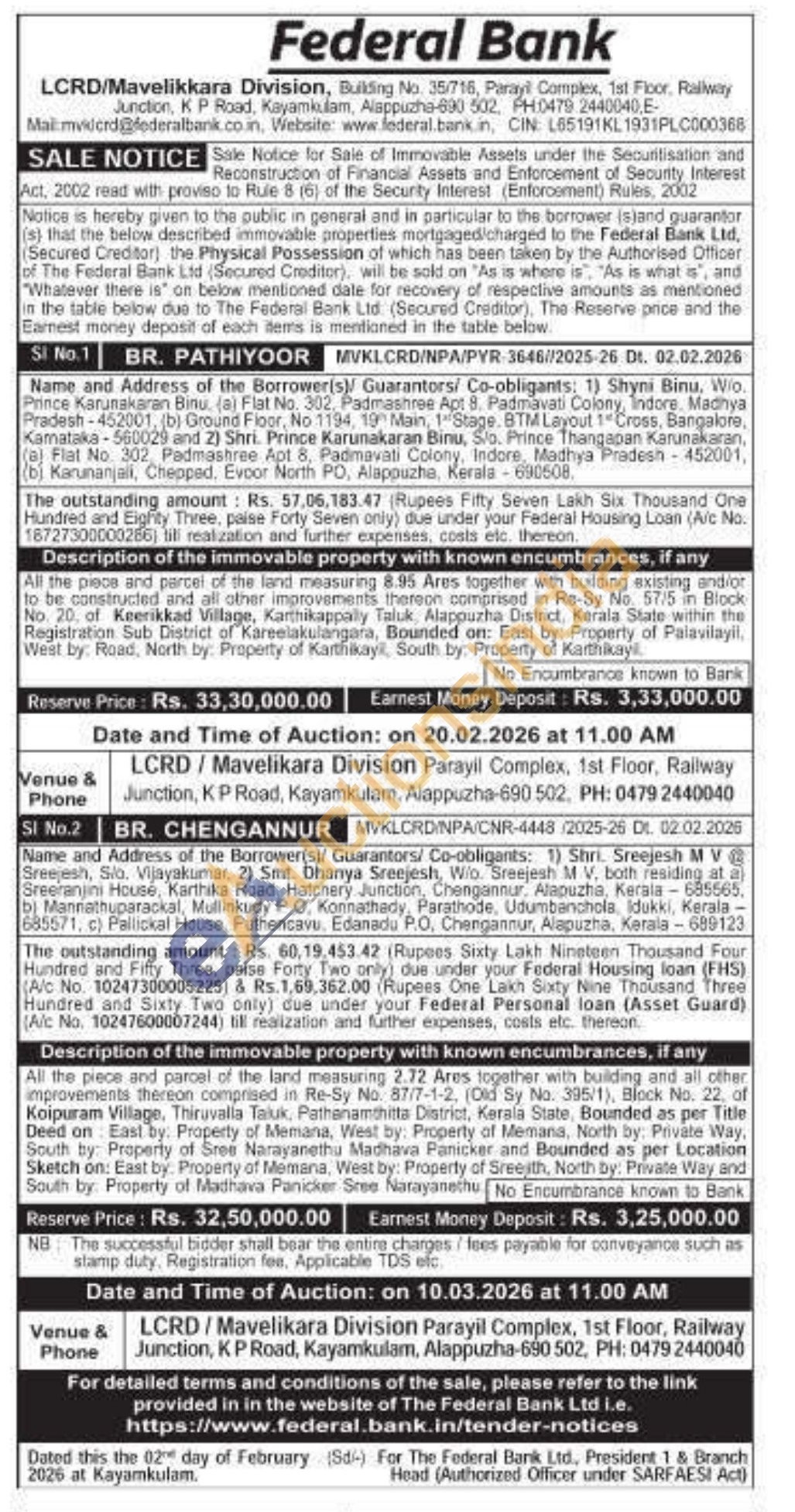 All the piece and parcel of the land measuring 2.72 Ares together with building and all other improvements thereon comprised in Re-Sy No. 87/7-1-2, (Old Sy No. 395/1), Block No. 22, of Koipuram Village, Thiruvalla Taluk, Pathanamthitta District, Kerala State, Bounded as per Title Deed on East by. Property of Memana, West by: Property of Memana, North by: Private Way, South by: Property of Sree Narayanethu Madhava Panicker and Bounded as per Location Sketch on: East by. Property of Memana, West by: Property of Sreejith, North by: Private Way and South by: Property of Madhava Panicker Sree Narayanethu