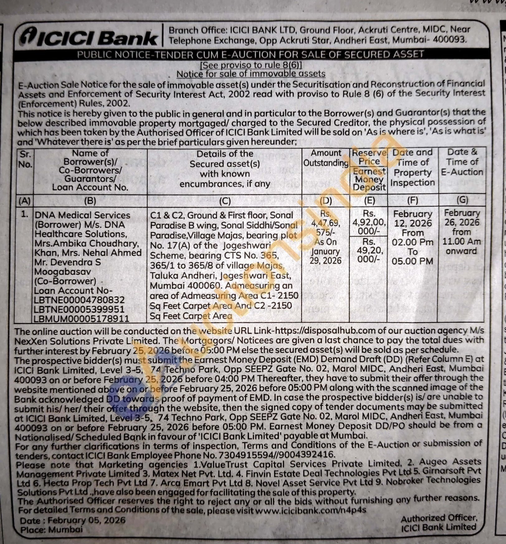 C1 & C2, Ground & First floor, Sonal Paradise B wing, Sonal Siddhi/Sonal Paradise, Village Majas, bearing plot No. 17(A) of the Jogeshwari Scheme, bearing CTS No. 365, 365/1 to 365/8 of village Majas, Taluka Andheri, Jogeshwari East, Mumbai 400060. Admeasuring an area of Admeasuring Area C1-2150 Sq Feet Carpet Area And C2-2150 Square Feet
