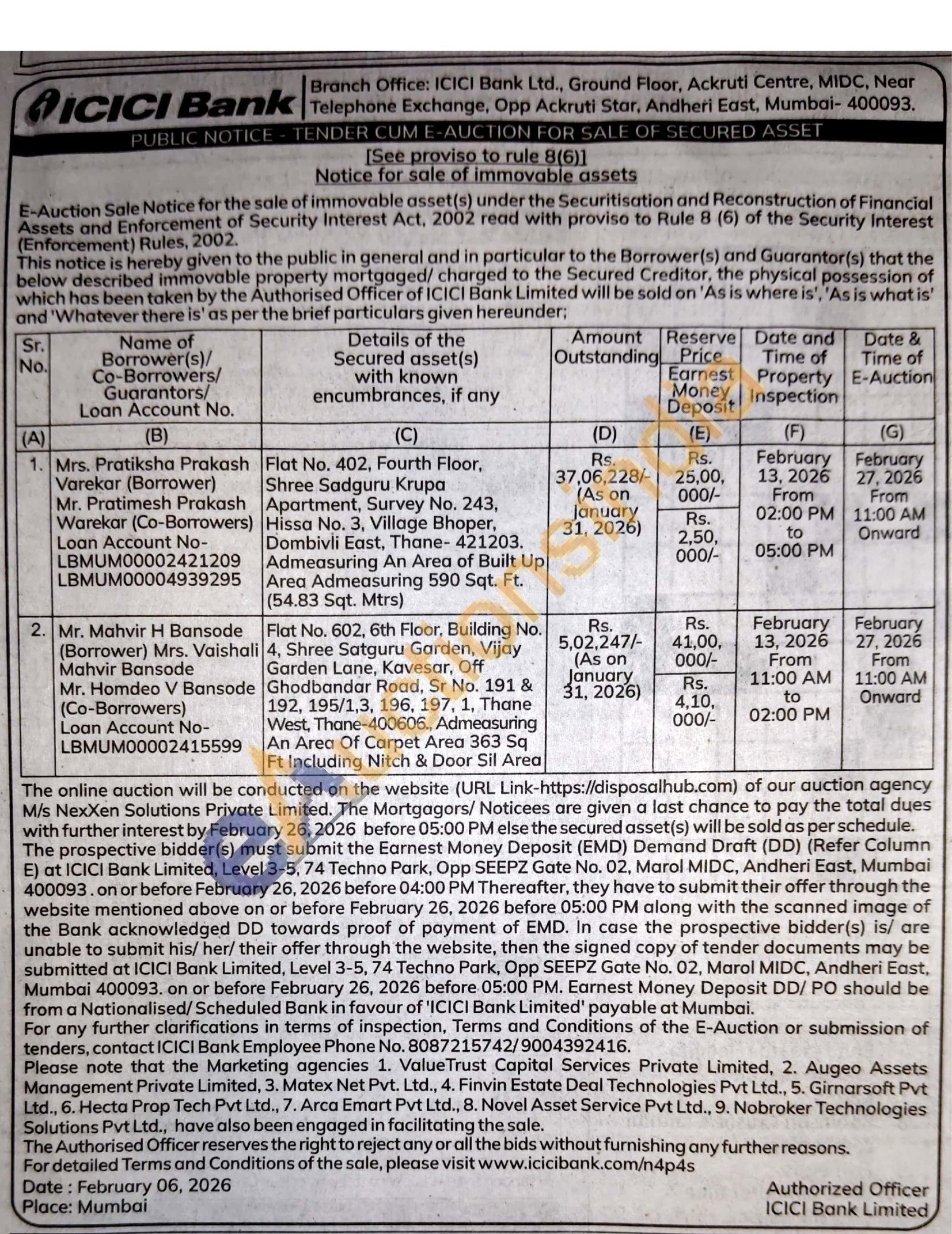 Flat No. 402, Fourth Floor, Shree Sadguru Krupa Apartment, Survey No. 243, Hissa No. 3, Village Bhoper, Dombivli East, Thane-421203. Admeasuring An Area of Built Up Area Admeasuring 590 Sqt. Ft. (54.83 Sqt. Mtrs)