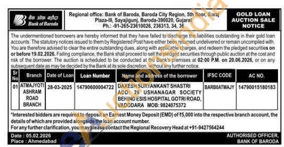 Bank of Baroda Gold Auctions Auction in Ahmedabad