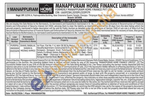 1st Floor, Flat No. F-4, Adm 38.38 Sq Meters, E, 433.00 Sq. Ft. Vasudha Apartment, Constructed On R.s.no-102/1-2/2 At Mouje Koregaon, Koregaon Gram Panchayath Tal- Koregaon, Dist-Satara, Po Bhose, Satara, Maharashtra, Pin: 415501 East-Open Space, West-Staircase & Fiat No. F.3. SouthOpen Space 6 Koreguan Ekambe Road, North-Flat No-2