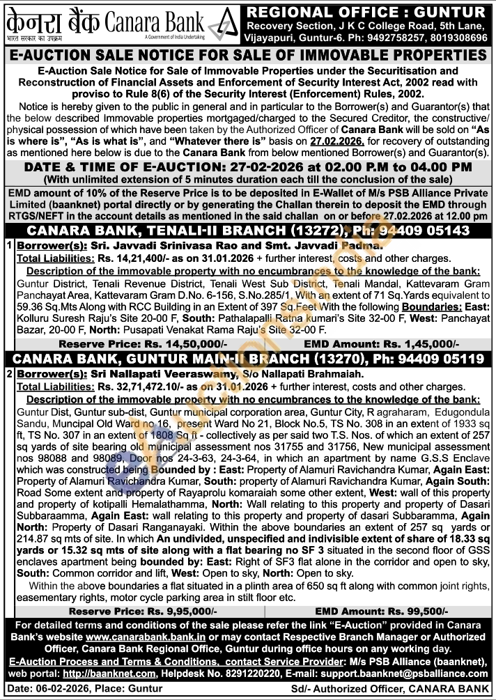 Guntur Dist, Guntur sub-dist, Guntur municipal corporation area, Guntur City, R agraharam, Edugondula Sandu, Muncipal Old Ward no 16, present Ward No 21, Block No.5, TS No. 308 in an extent of 1933 sq ft, TS No. 307 in an extent of 1808 Sq ft-collectively as per said two T.S. Nos. of which an extent of 257 sq yards of site bearing old municipal assessment nos 31755 and 31756, New municipal assessment nos 98088 and 98089, Door nos 24-3-63, 24-3-64, in which an apartment by name G.S.S Enclave which was constructed being Bounded by: East: Property of Alamuri Ravichandra Kumar, Again East: Property of Alamuri Ravichandra Kumar, South: property of Alamuri Ravichandra Kumar, Again South: Road Some extent and property of Rayaprolu komaraiah some other extent, West: wall of this property and property of kotipalli Hemalathamma, North: Wall relating to this property and property of Dasari Subbaraamma, Again East: wall relating to this property and property of dasari Subbaramma, Again North: Property of Dasari Ranganayaki. Within the above boundaries an extent of 257 sq yards or 214.87 sq mts of site. In which An undivided, unspecified and indivisible extent of share of 18.33 sq yards or 15.32 sq mts of site along with a flat bearing no SF 3 situated in the second floor of GSS enclaves apartment being bounded by: East: Right of SF3 flat alone in the corridor and open to sky, South: Common corridor and lift, West: Open to sky, North: Open to sky.