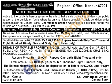 DETAILS OF MOVABLE PROPERTY: MODEL: M/s Atul Auto Ltd./Atul Gem 3P 200 BI; FUEL: CNG; REGN NO: KL-58-AG-6821; ENGINE NO: CGS22G09131; CHASIS NO: MCG61R3CGG2205431