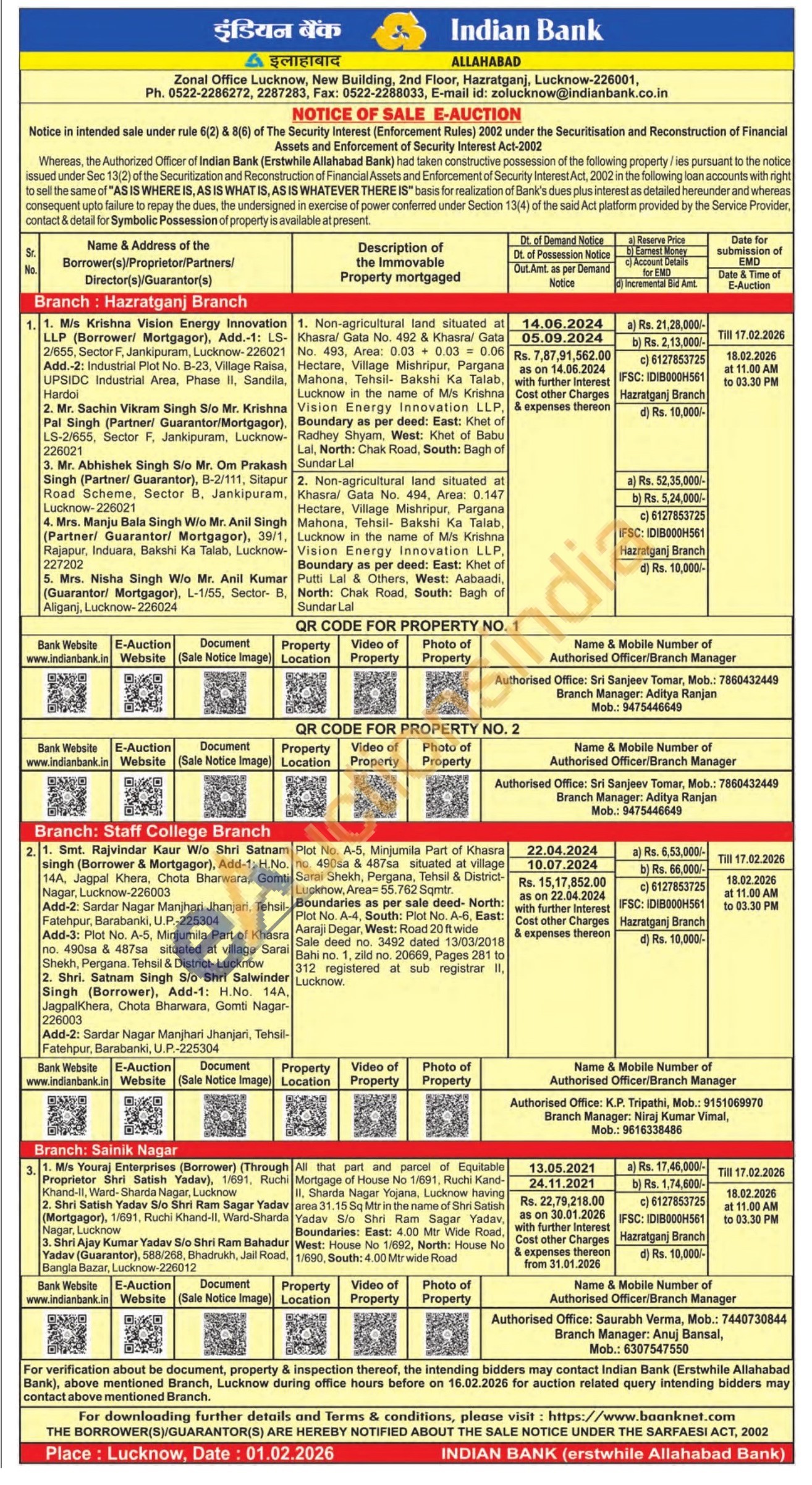 Non-agricultural land situated at Khasra/ Gata No. 494, Area: 0.147 Hectare, Village Mishripur, Pargana Mahona, Tehsil- Bakshi Ka Talab, Lucknow in the name of M/s Krishna Vision Energy Innovation LLP, Boundary as per deed: East: Khet of Putti Lal & Others, West: Aabaadi, North: Chak Road, South: Bagh of Sundar Lal