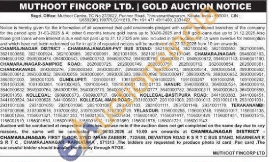 Muthoot Fincorp Ltd Gold Auctions Auction in Chamarajanagar