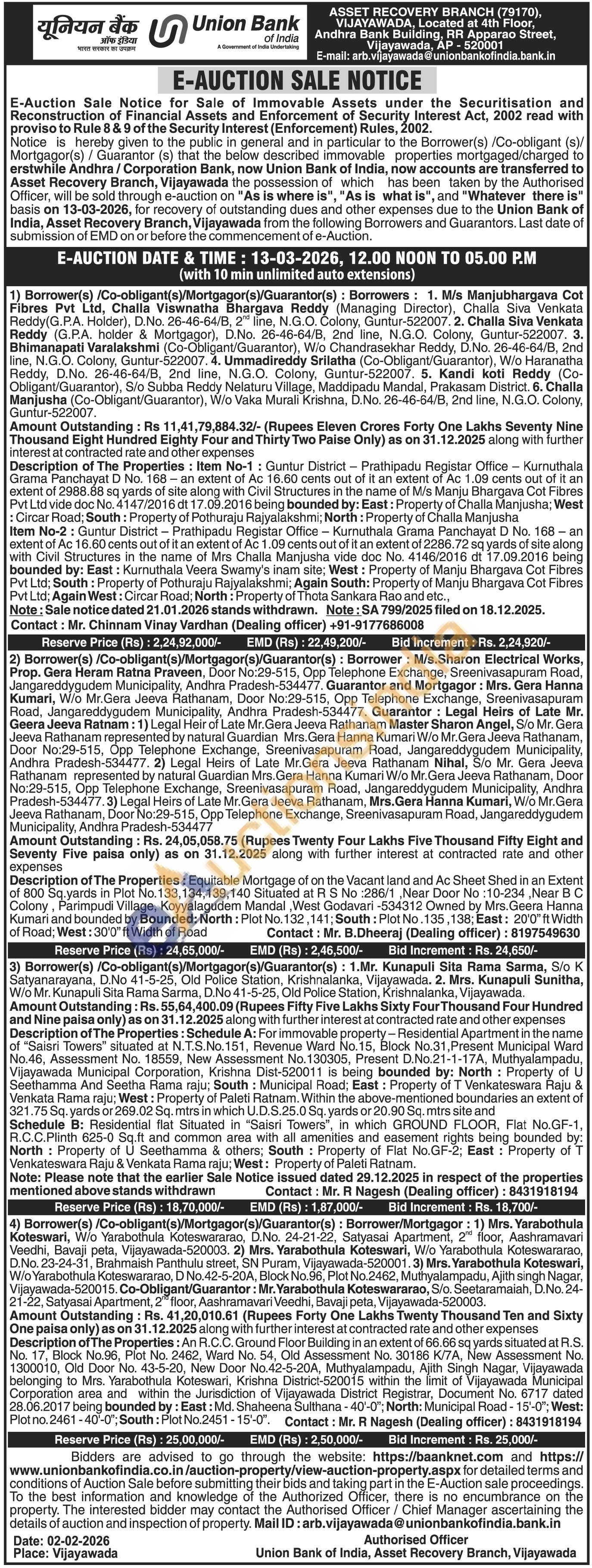 Description of The Properties: An R.C.C. Ground Floor Building in an extent of 66.66 sq yards situated at R.S. No. 17, Block No.96, Plot No. 2462, Ward No. 54, Old Assessment No. 30186 K/7A, New Assessment No. 1300010, Old Door No. 43-5-20, New Door No.42-5-20A, Muthyalampadu, Ajith Singh Nagar, Vijayawada belonging to Mrs. Yarabothula Koteswari, Krishna District-520015 within the limit of Vijayawada Municipal Corporation area and within the Jurisdiction of Vijayawada District Registrar, Document No. 6717 dated 28.06.2017 being bounded by: East: Md. Shaheena Sulthana - 40'-0"; North: Municipal Road - 15'-0"; West: Plot no. 2461-40-0"; South: Plot No.2451-15'-0"
