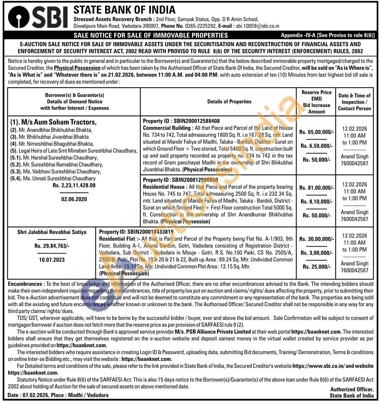 Residential House: All that Piece and Parcel of the property bearing House No. 745 to 747, Total admeasuring 2500 Sq. ft. i.e 232.34 Sq. mtr. Land situated at Mandir Faliya of Madhi, Taluka - Bardoli, District Surat on which Ground Floor + First Floor construction Total 5000 Sq. ft. Construction in the ownership of Shri Anandkumar Bhikhubhai Bhakta