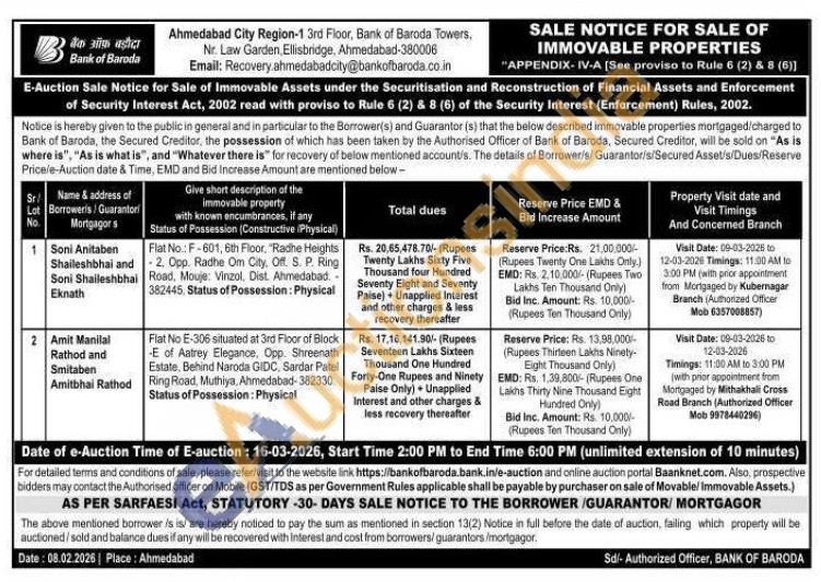 Flat No.: F-601, 6th Floor, "Radhe Heights 2. Opp. Radhe Om City, Off. S. P. Ring Road, Mouje: Vinzol. Dist. Ahmedabad. 382445, Status of Possession: Physical