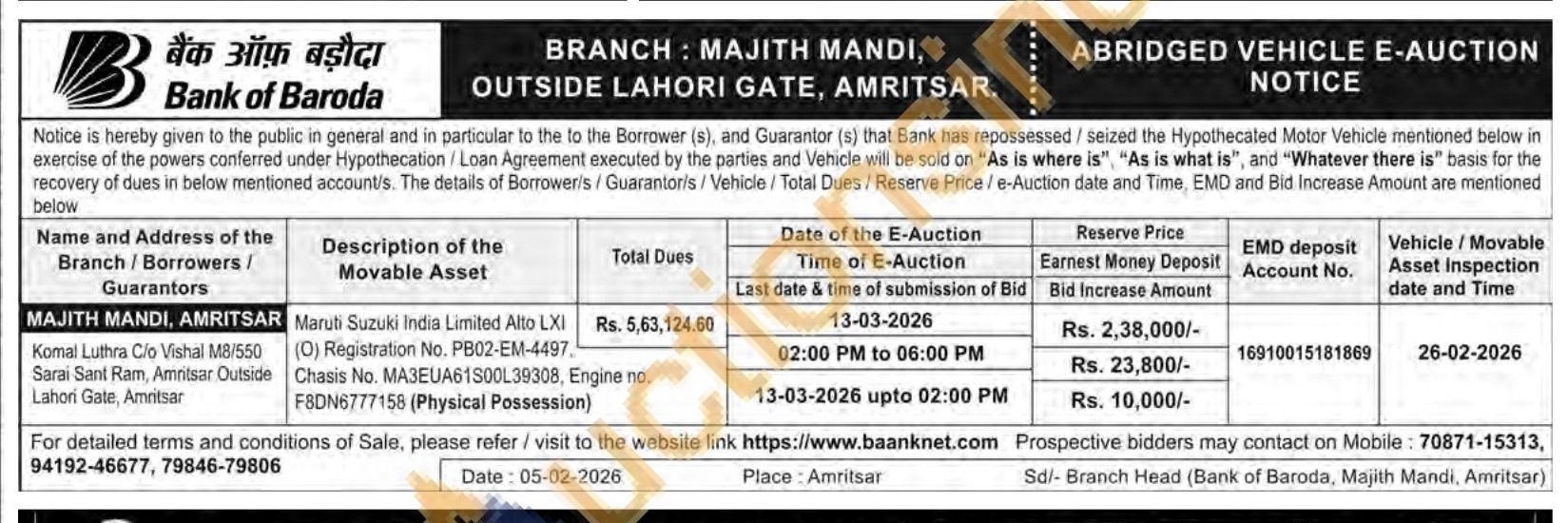 Maruti Suzuki India Limited Alto LXI 0) Registration No. PB02-EM-4497 Chasis No. MA3EUA61S00L39308, Engine no F8DN6777158