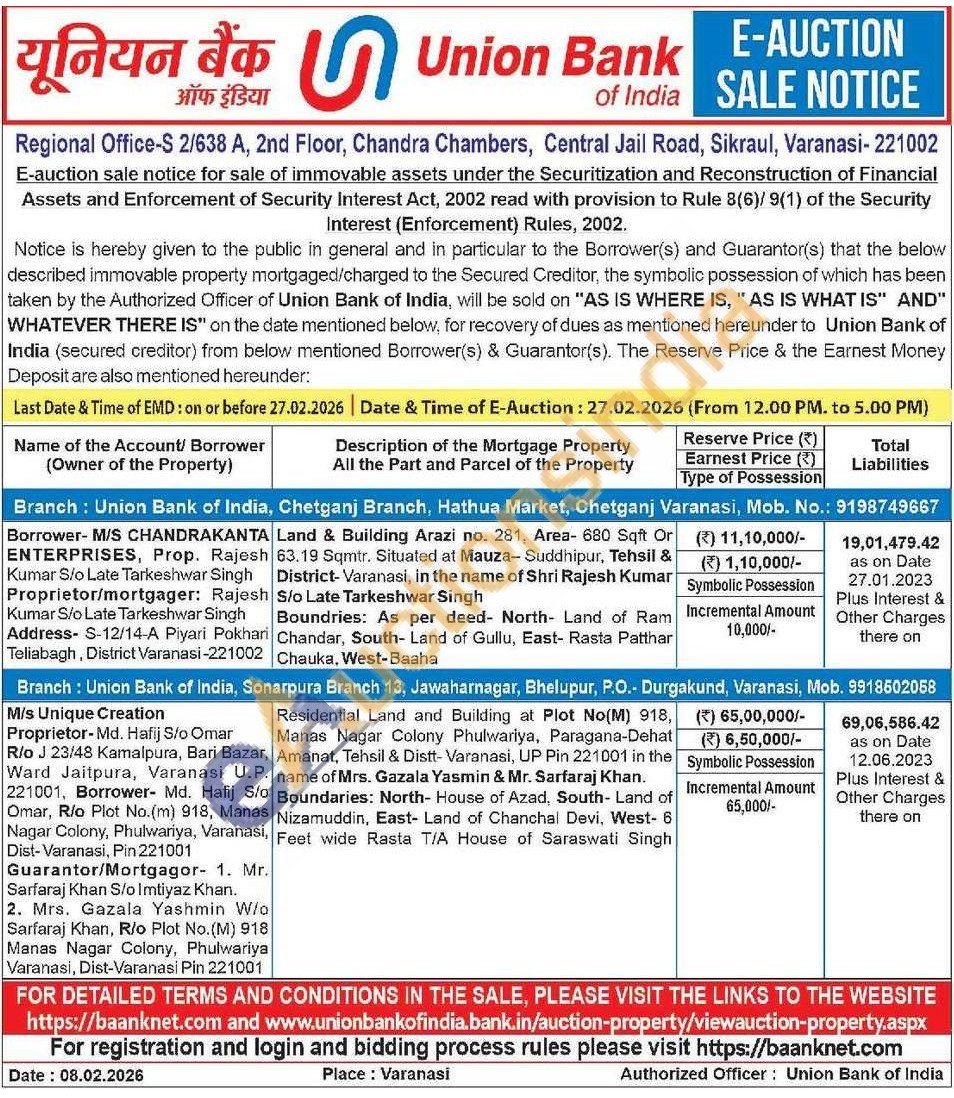 Land & Building Arazi no. 281, Area- 680 Sqft Or 63.19 Sqmtr. Situated at Mauza- Suddhipur, Tehsil & District-Varanasi, in the name of Shri Rajesh Kumar S/o Late Tarkeshwar SinghBoundries: As per deed- North- Land of Ram Chandar, South- Land of Gullu, East- Rasta Patthar Chauka, West-Baaha