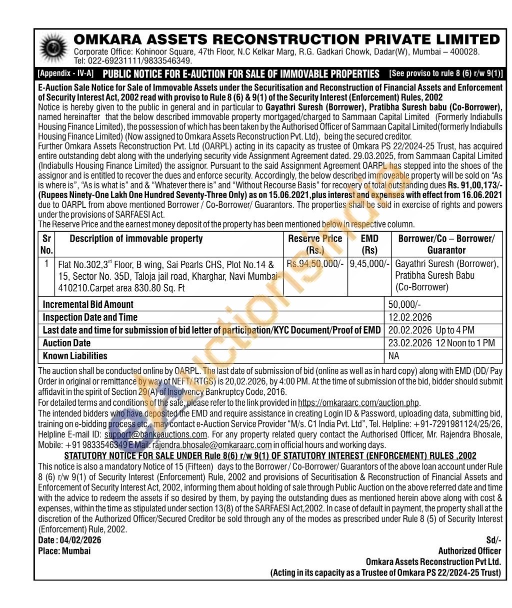 Authorised Officer, Mr. Rajendra Bhosale, Mobile: +91 9833546349
