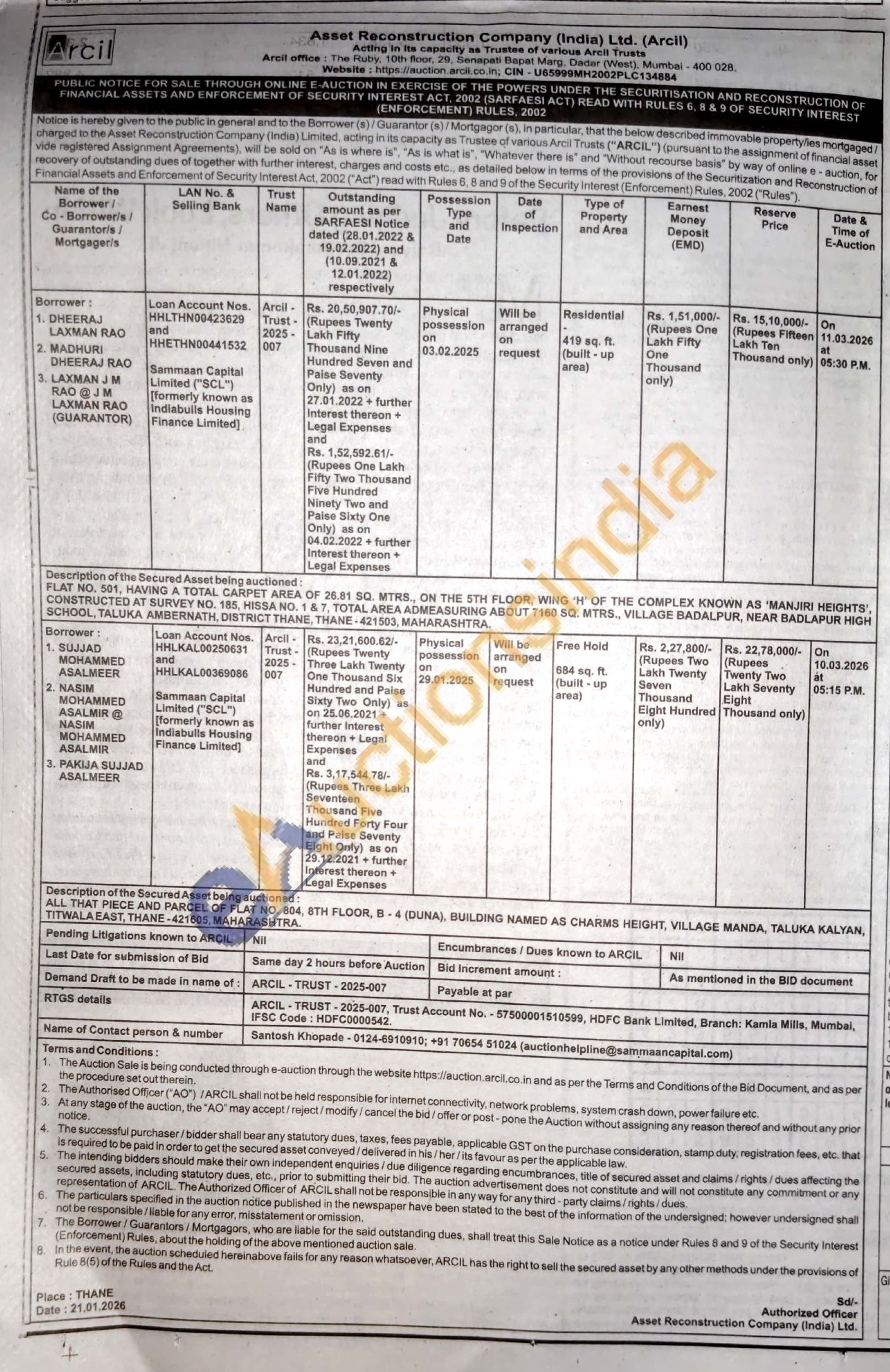 FLAT NO. 501, HAVING A TOTAL CARPET AREA OF 26.81 SQ. MTRS., ON THE 5TH FLOOR, WING 'H' OF THE COMPLEX KNOWN AS 'MANJIRI HEIGHTS', CONSTRUCTED AT SURVEY NO. 185, HISSA NO. 1 & 7, TOTAL AREA ADMEASURING ABOUT 7160 SQ. MTRS., VILLAGE BADALPUR, NEAR BADLAPUR HIGH SCHOOL, TALUKA AMBERNATH, DISTRICT THANE, THANE-421503, MAHARASHTRA