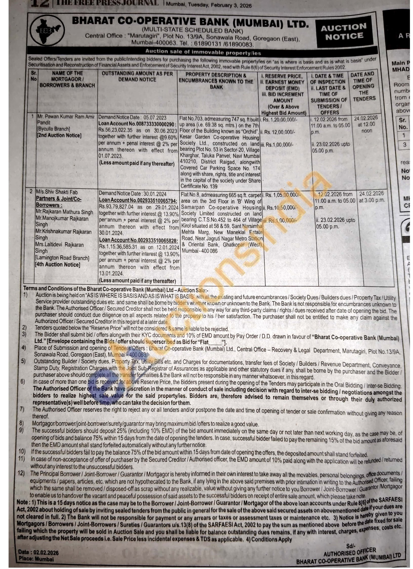 Flat No.8, admeasuring 665 sq.ft. carpetli area on the 3rd Floor in 'B' Wing of Samarpan Co-operative Housing ii Society Limited constructed on land bearing C.T.S.No.452 to 464 of Village Kirol situated at 58 & 59, Sant Narsimha Mehta Marg, New Maneklal Estate Road, Near Jagruti Nagar Metro Station & Oriental Bank, Ghatkopar (West), Mumbai-400 086