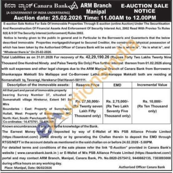 All that part and parcel of immovable property bearing Survey Number 37, situated at Somanahalli village Hirekerur, Extent 541 sq Mtrs