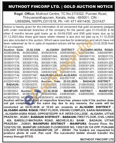Muthoot Fincorp Ltd Gold Auctions Auction in Aligarh