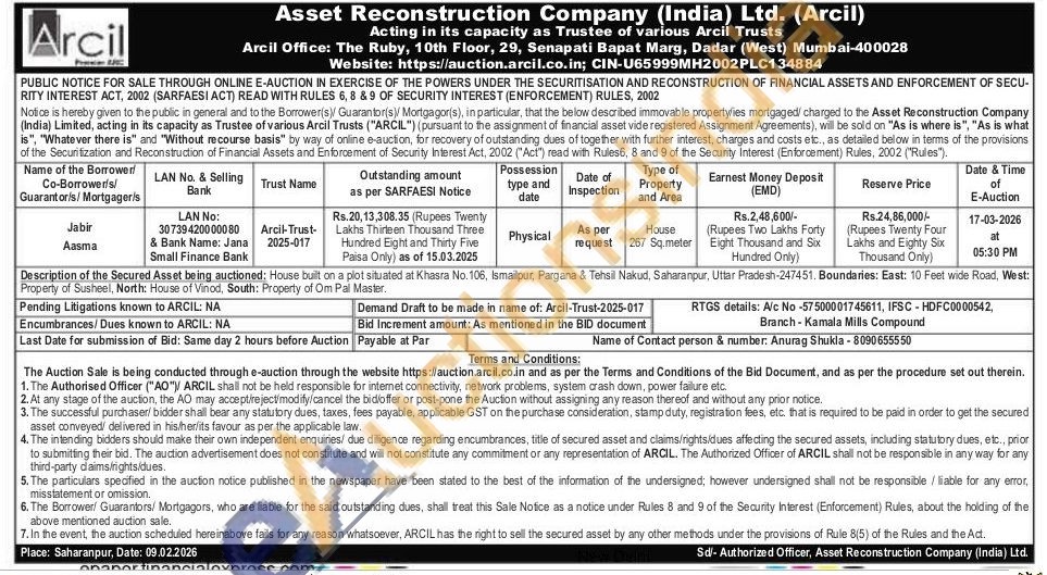 Description of the Secured Asset being auctioned: House built on a plot situated at Khasra No. 106, Ismailpur, Pargana & Tehsil Nakud, Saharanpur, Uttar Pradesh-247451. Boundaries: East: 10 Feet wide Road, West: Property of Susheel, North: House of Vinod, South: Property of Om Pal Master.