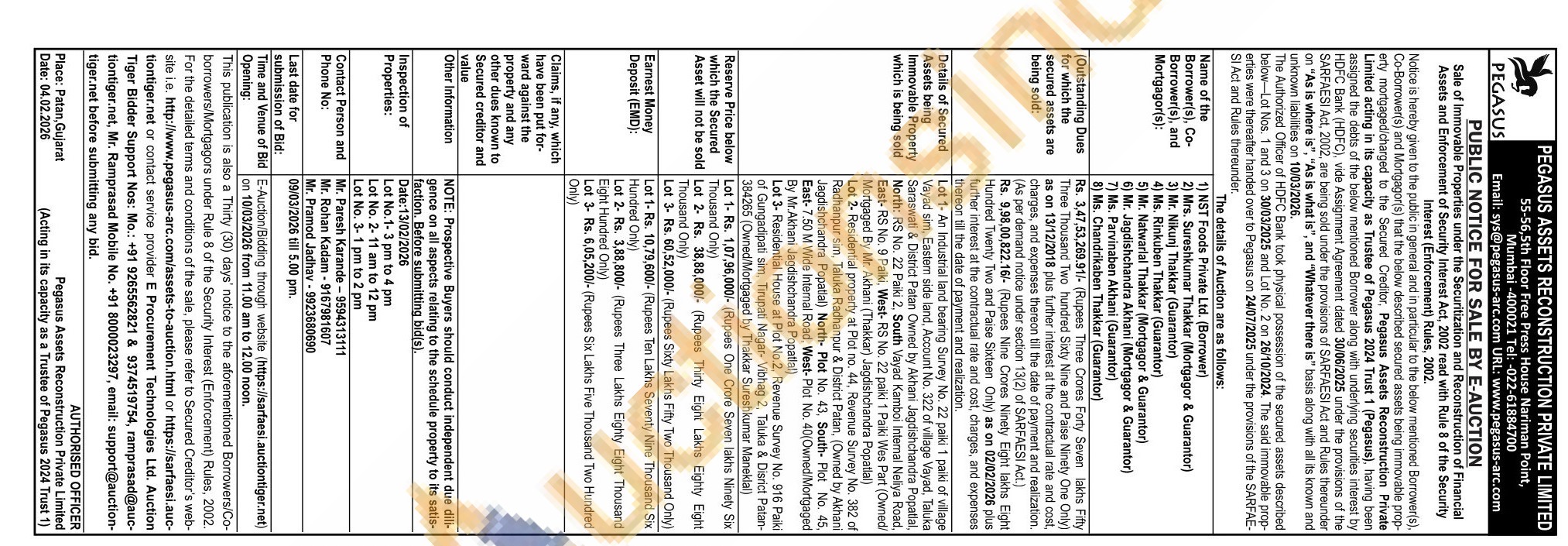 Lot 2- Residential property at Plot no. 44, Revenue Survey No. 382 of Radhanpur sim, Taluka Radhanpur & District Patan, (Owned by Akhani Jagdishchandra Popatlal) North Plot No. 43, South Plot No. 45, East-7.50 M Wide Internal Road, West-Plot No. 40(Owned/Mortgaged By Mr.Akhani Jagdishchandra Popatlal)