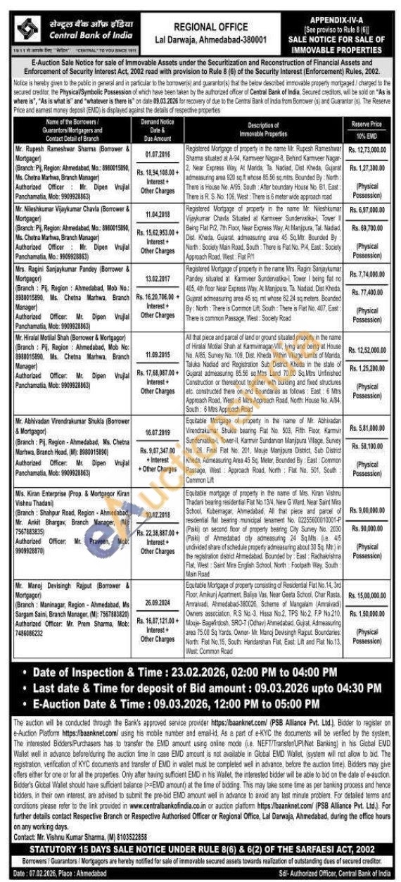 All that piece and parcel of land or ground situated property in the name of Hiralal Mobital Shah at Karmvimagar-Vill, lying and being at House No. A85, Survey No. 109, Dist. Kheda Within Village Limits of Marida Taluka Nadiad and Registration Sub District Kheda in the state of Gujarat admeasuring 85.56 sq.Mtrs Land 70.00 Sq. Mes Unfinished Construction or thereabout together with building and fixed structures eic constructed there on and Boundaries as follows East 6 Mirs Approach Road, West: 6 Mitrs Approach Road, North House No. A84, South: 6 Mrs Approach Road