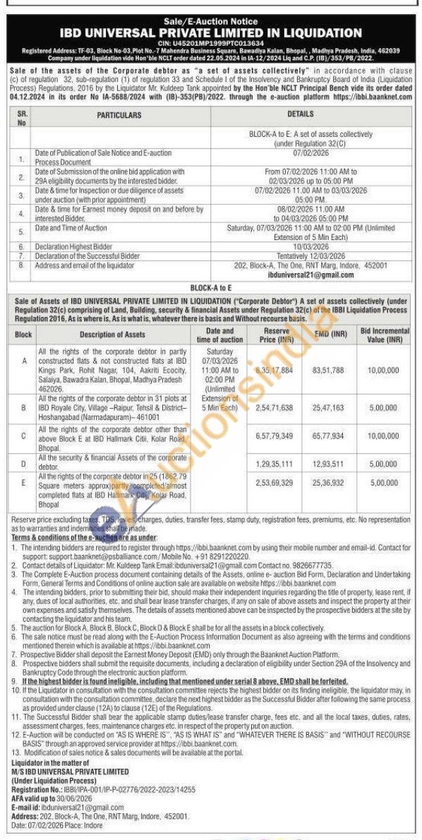 All the rights of the corporate debtor in 31 plots at IBD Royale City, Village-Raipur, Tehsil & District-Hoshangabad (Narmadapuram)-461001