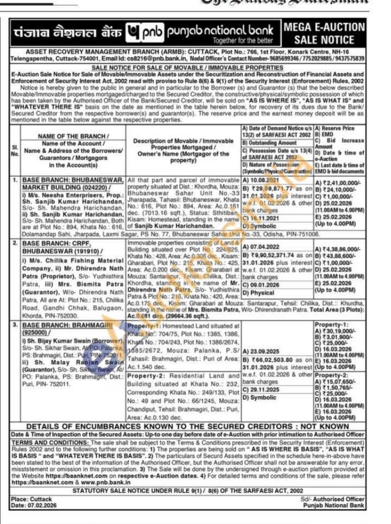 All that part and parcel of immovable property situated at Dist: Khordha, Mouza: Bhubaneswar Sahar Unit No.-33 Jharapada, Tahasil: Bhubaneswar, Khata No.: 616, Plot No.: 894, Area: Ac 0.161 dec. (7013.16 sqft.), Status: Sthitiban, Kisam: Homestead, standing in the name of Sanjib Kumar Harichandan.