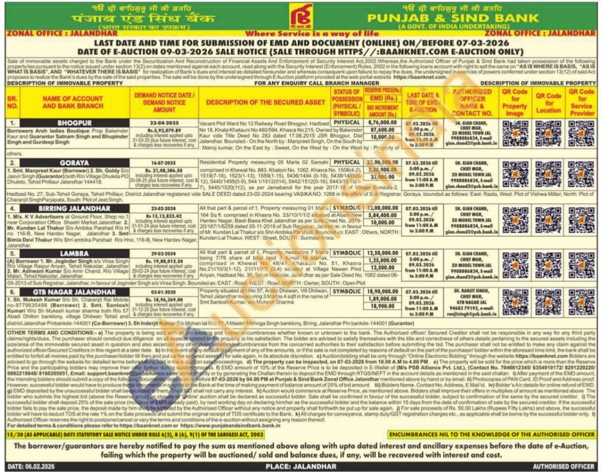 Vacant Plot Ward No 12 Railway Road Bhogpur. Hadbast No 18. Khata Khatauni No 480/594, Khasra No 215. Owned by Balwinder Kaur vide Title Deed No 283 dated 17.06.2015 JSR Bhogpur Dist Jalandhar Bounded: On the North by: Manpreet Singh, On the South by: Manoj kumar, On the East by: Sweet, On the West by: On the West by: Property of